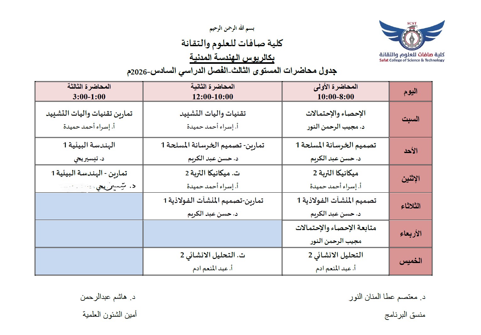 Safat College / Civil Engineering / Civil -level 3 / Semester Sixth
