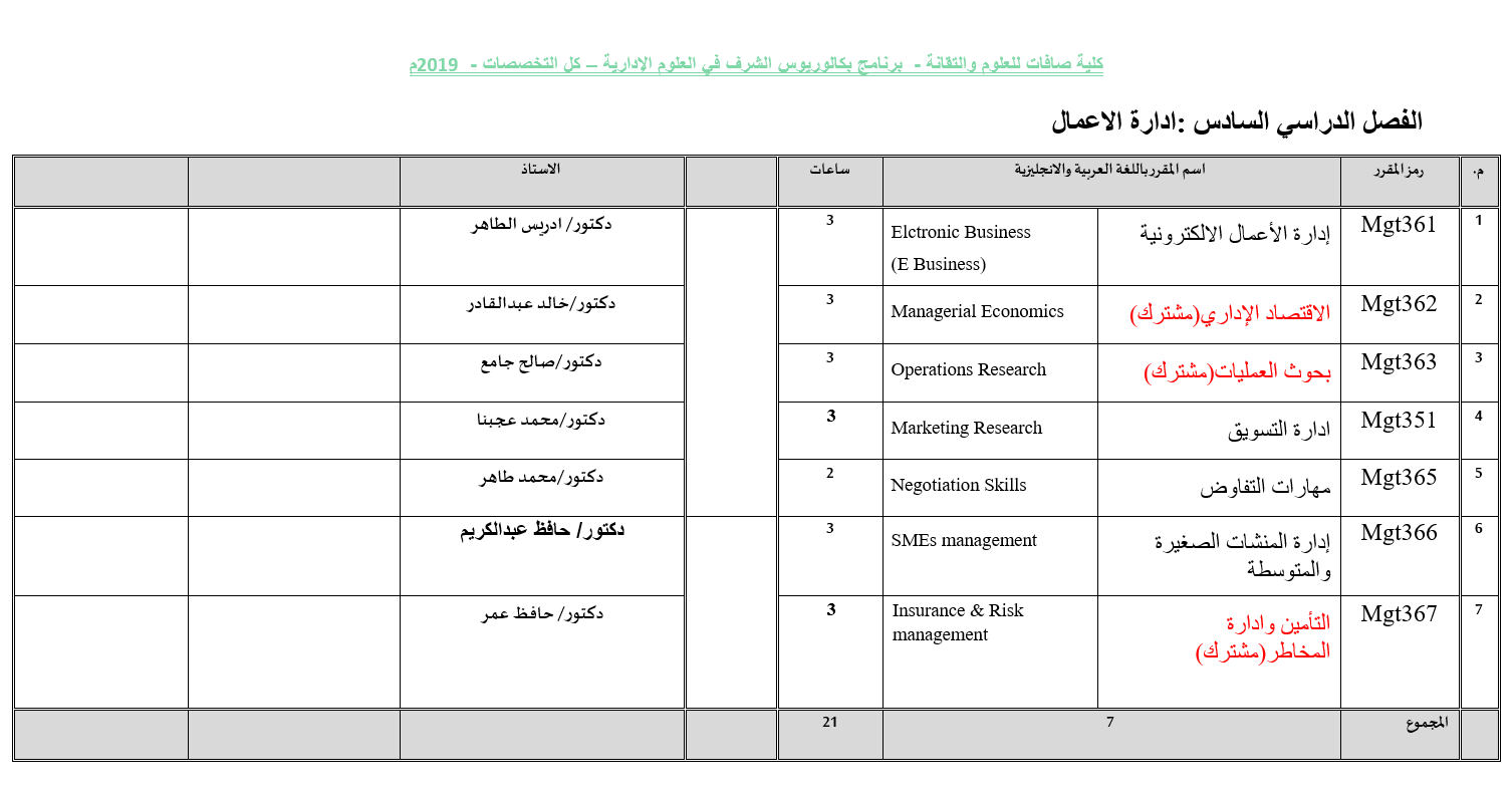 Safat College / Administrative sciences / First Batch_ADS / Business Management / Seventh semester